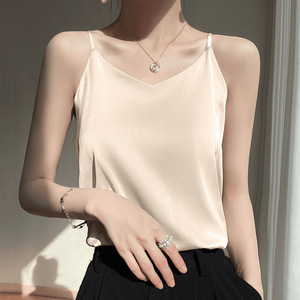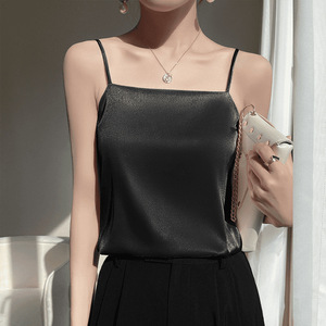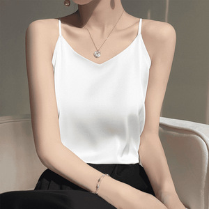 ホワイトキャミソールレディース模擬シルクスーツインナー2025夏の新しいファッション多用途スリムフィットボトムストップ