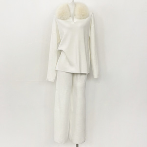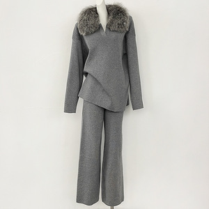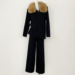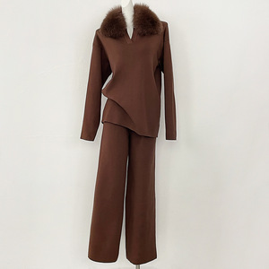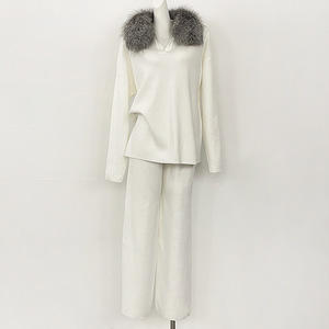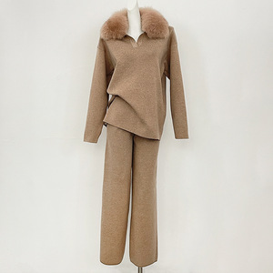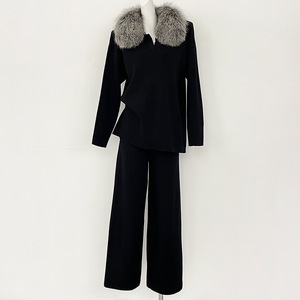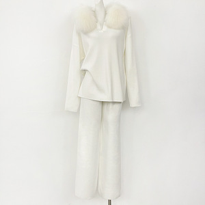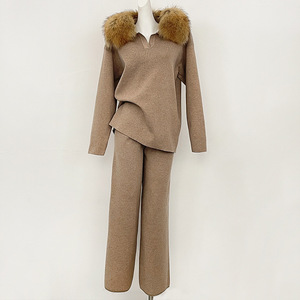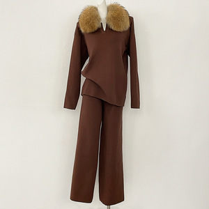 休闲通勤款2025新款跨境欧美风两件套可拆卸大毛领百搭针织衫套装