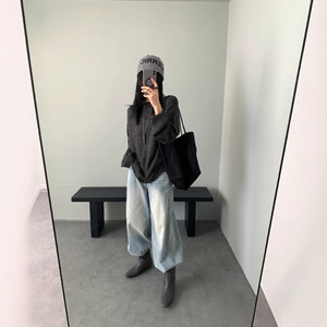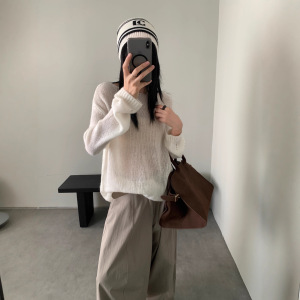 2025春秋新款羊毛韩版温柔慵懒风宽松针织毛衣百搭镂空长袖上衣女