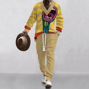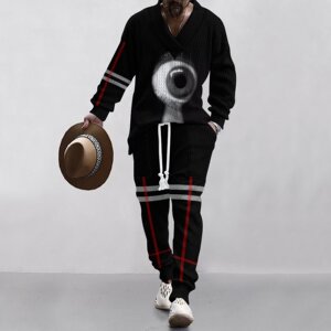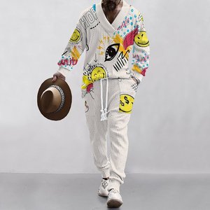 2025 クロスボーダーヨーロッパとアメリカのレトロな抽象的なプリントパターンファッショナブルなルーズメンズ新しいストリートカジュアルスウェットシャツ