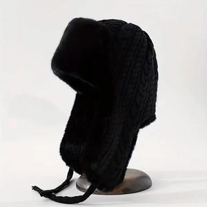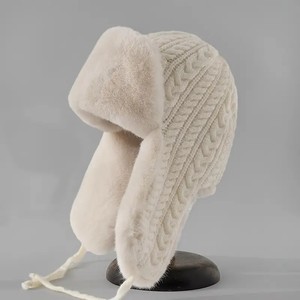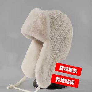 毛线雷锋帽女冬季韩版百搭毛绒加厚保暖护耳帽绑绳设计御寒包头帽