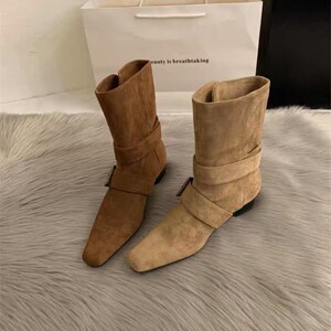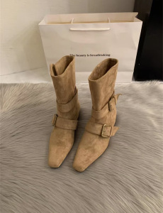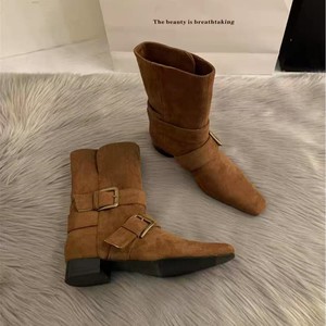 小众设计复古皮带扣时装靴女2025年新款法式慵懒风方头西部中筒靴