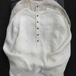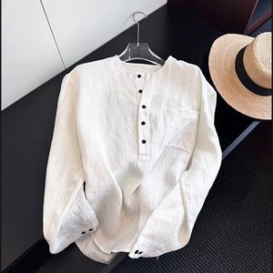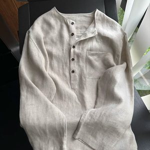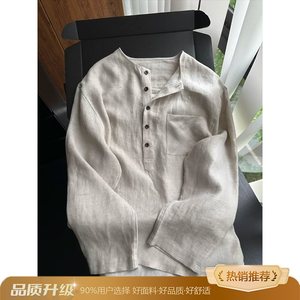 老钱风亚麻长袖衬衫男夏季通勤轻薄衬衣轻奢松弛感宽松薄t恤上衣