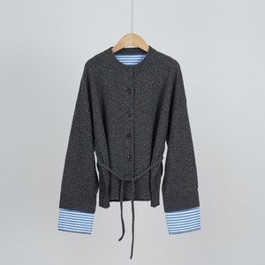 意大利BC早柜新 D制条纹布+经典珠链精纺羊毛羊绒优雅百搭开衫女