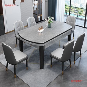 岩板餐桌出租房家用方圆两用组合简约中小户型折叠伸缩吃饭桌子厂