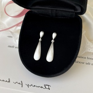 银白色拉丝水滴耳钉精致时尚简约通勤几何长条耳环女气质显瘦耳饰