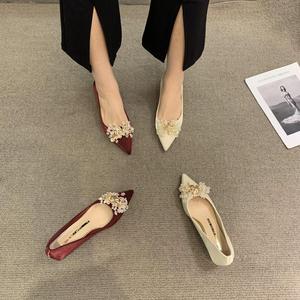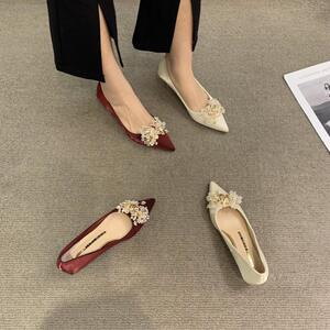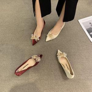婚鞋新娘鞋红色女禾秀婚纱两穿不累脚婚宴中式汉服高级感平底鞋