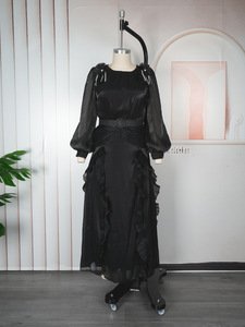 跨境欧美时尚气质花朵礼服非洲外贸速卖通大码女装压褶长袖连衣裙