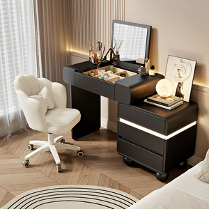 2025新款梳妆台卧室简约现代翻盖镜子可隐藏实木化妆桌斗柜一体