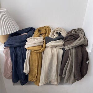 双拼色棉麻围巾女春秋季优雅文艺百搭长款大披肩丝巾冬天薄款纱巾