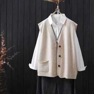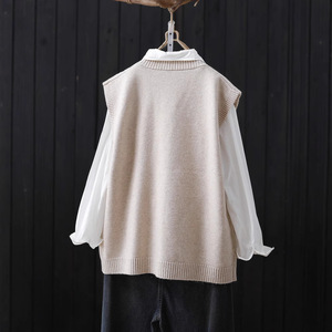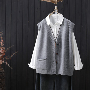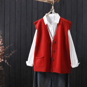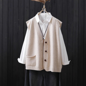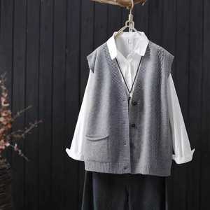 2025春秋季新款文艺风V领单排扣针织马甲开衫外搭无袖毛衣背心女