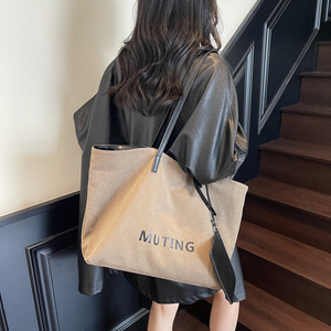 通勤大容量帆布包包女式2025新款休闲百搭单肩包大学生外出托特包