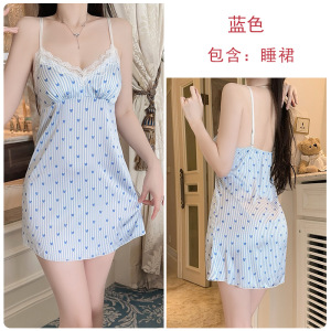 瑰若女士丝滑缎面内衣深V聚拢加胸垫火辣修身吊带睡裙家居服6194