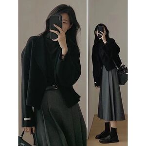 秋冬季新款韩系复古高级感宽松百搭女短款毛呢长袖大衣外套上衣潮