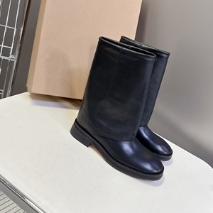 高版小众新款翻盖裤管靴女时髦粗跟真皮裤筒靴2025秋冬骑士靴短靴