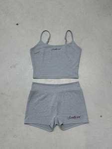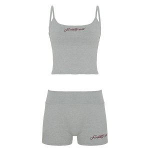 时尚街头美式休闲运动套装女士修身字母印花吊带短裤健身两件套夏