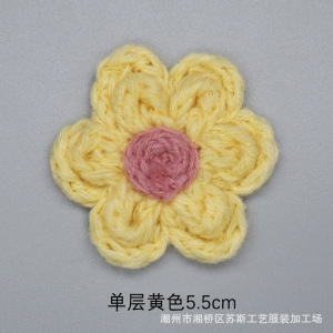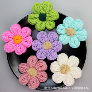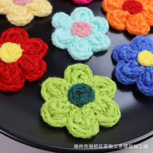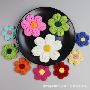 苏斯彩色仿手钩织泡芙小花毛衣外套围巾贴花女装配饰外套服装辅料