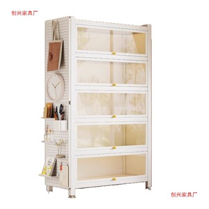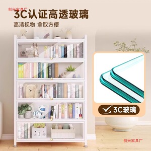 漫欧钢制书架带玻璃门防尘书柜客厅落地多层储物柜铁皮手办展示柜
