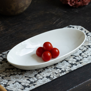 【米白】舟形鱼盘德化白瓷船型盘10.8英寸椭圆海鲜盘果盘长条菜盘