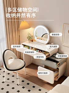 小户型梳妆台卧室2025新款奶油风现代简约化妆桌床头斗柜一体高级