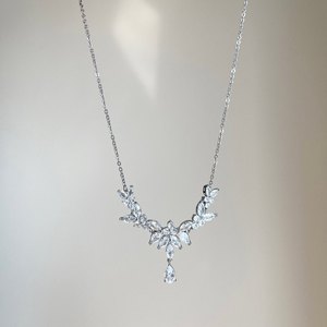 小红书爆款仙麦穗水滴锆石花朵项链高级感气质轻奢小众设计锁骨链