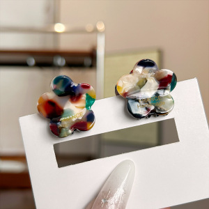韩国France金标水墨棕色系花朵小发抓夹复古龄刘海发夹顶夹发饰