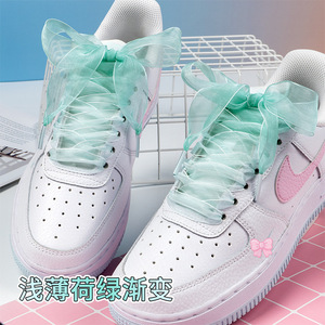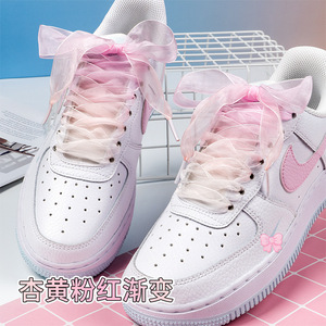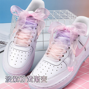 七彩雪纱鞋带2.5cm宽环保材质配粉色渐变绳aj1小白鞋af1空军一号