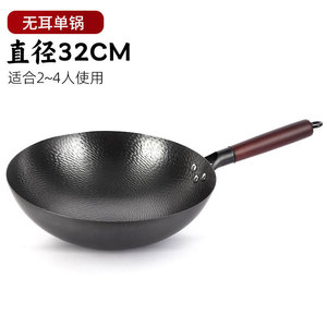 山东锻打铁锅炒锅无涂层手打不粘锅明火专用熟铁家用炒菜锅炒勺