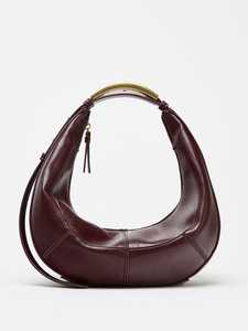 欧美复古新月包拼接设计金属提把小号手提单肩腋下包