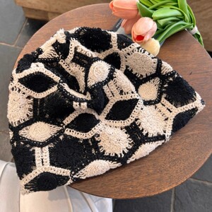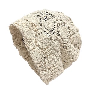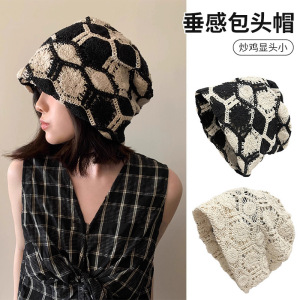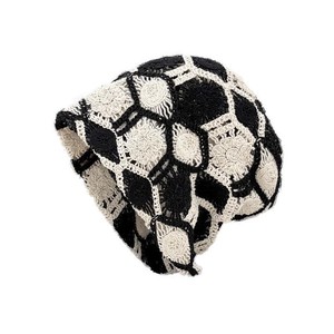秋冬新款手工钩花黑白针织帽子女休闲百搭堆堆帽显脸小镂空包头帽