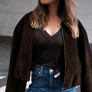 2025 秋冬新作ルーズスエードショート野球ジャケット女性のデザイン気質カジュアルクロスボーダー通勤