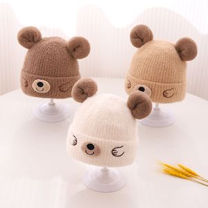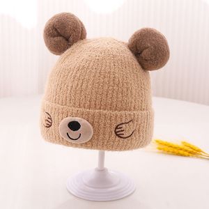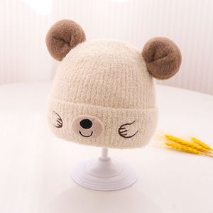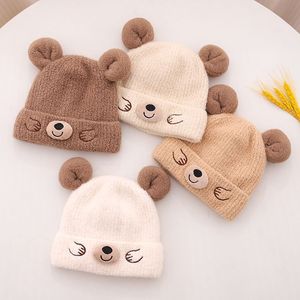 冬季韩国抱抱熊耳朵针织帽子男女童秋可爱百搭保暖包头护耳毛线帽