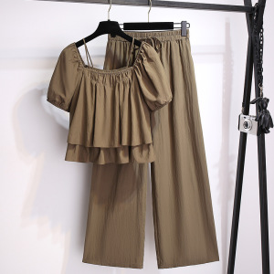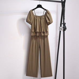 短袖衬衫配直筒阔腿裤子女2025夏季新款时尚休闲洋气减龄两件套装
