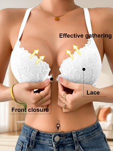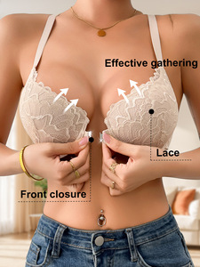 跨境爆款欧美风蕾丝前扣聚拢美背文胸舒适薄杯内衣聚拢temu热卖