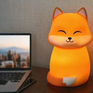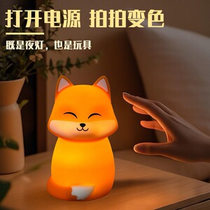 可爱狐狸小夜灯儿童礼物可充电卧室摆件创意卡通硅胶拍拍灯台灯