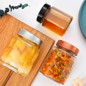 批发多款高盖四方酱菜瓶玻璃六棱角蜂蜜瓶辣椒酱瓶圆形密封罐带盖