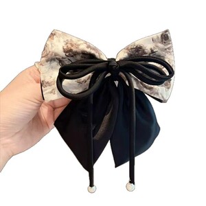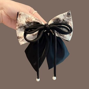 新中式头饰复古水墨画蝴蝶结发夹女后脑勺盘发弹簧夹半扎一字横夹