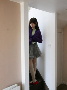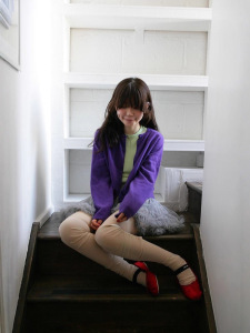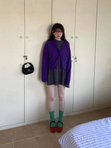 现 韩国设计师frec*le紫色开衫韩系女装简约百搭显瘦修身针织外