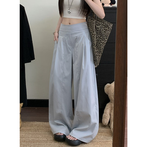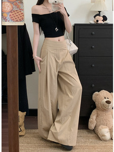 日系卡其色休闲阔腿裤女2025秋季高腰显瘦宽松慵懒风直筒拖地长裤
