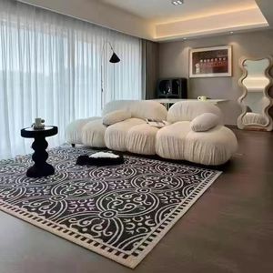 リビングルームカーペットインクリームスタイルライト高級ソファコーヒーテーブルブランケットモダンなベッドルームベッドサイドルーム汚れにくいフロアマット