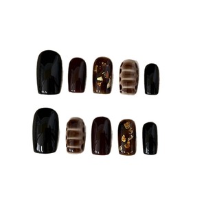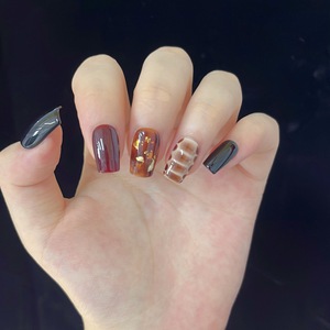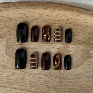 小红书爆款秋天琥珀新款晕染中方咖色系列纯手工穿戴甲