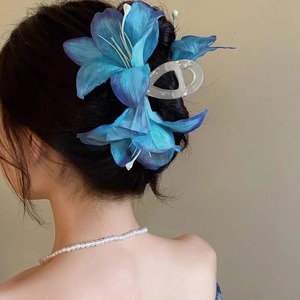 超仙氛围感仿真百合花朵发夹唯美高级感后脑勺盘发鲨鱼夹发抓头饰