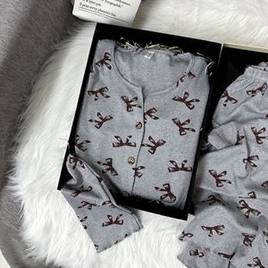 2025新款螺纹冰丝睡衣女士春秋季宽松长袖长裤休闲简约家居服批发