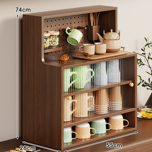 杯架长虹玻璃茶具收纳柜桌面实木防尘杯子放水杯咖啡杯餐桌置物架