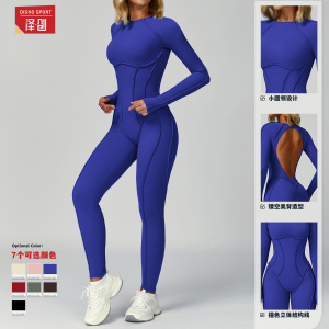 クロスボーダー起毛コントラストカラーヨガジャンプスーツ中空バックヨガ服女性の立体タイトスポーツフィットネス服 9319