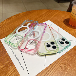 适用iPhone17渐变磁吸手机壳15promax撞色苹果16pro透明13magsafe