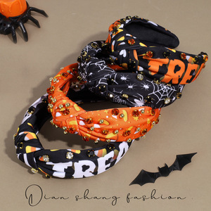 跨境万圣节布艺蜘蛛网幽灵打结宽边发箍时尚高颅顶水钻头箍头饰