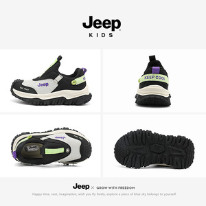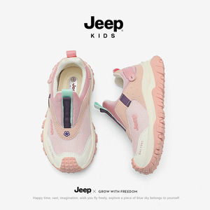 jeep女童运动鞋2025新款网面春季女孩一脚蹬跑步童鞋防滑儿童鞋子