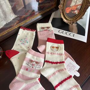 可爱日系卡通小女孩粉色温柔系学生党中筒袜花边小花可爱系时尚少