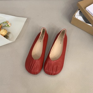 复古褶皱平底奶奶鞋女2025夏季新款百搭一脚蹬浅口单鞋软底豆豆鞋